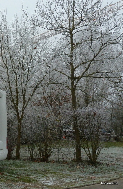 Es war den ganzen Tag sehr sonnig, aber kalt. Kurz vor Genf kamen wir dann in eine dicke Nebelsuppe und auf dem CP Platz in Genf war alles mit Raureif überfroren.