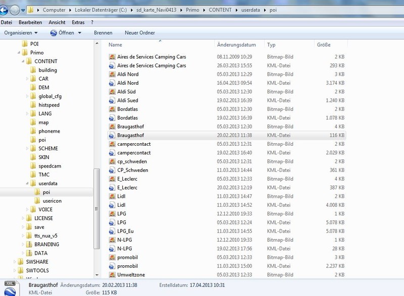 danke dir, werde das mal in Ruhe durcharbeiten, evtl. hilft es mir auch Auch da wurden fremde Icon angezeigt. Allerdings hatte die kml-Datei damals eine andere Struktur als Primo es heute hat. Wenn ich in meinen Unterlagen noch sowas finde, kann ich ein Beispiel bringen, wenns denn gewünscht wird. Hallo Sperling, jetzt hast Du Dir aber sehr viel Mühe gemacht. Vielen Dank. So wie in Deinen screenshots habe ich es auch probiert, aber ohne Erfolg. Dann bleibe ich eben bei meiner -aufwendigen - Methode. Hauptsache IGO8 macht, was ich will. Aber vielleicht haben andere User eine andere IGO-Version, denen Du damit vielleicht geholfen hast. Das ist ja der Sinn des Forums. Danke nochmals. Schaut mal unter "freemapsupdate.com" login pnavi pass 12890780 Fast aktuelle Maps + ein fertiges iGo8..........Prost Hallo tutnix11, habe ich probiert mit Germany. Es waren die Kartendaten 4/2012. Es gibt aber bereits die Karten von 2/2013.