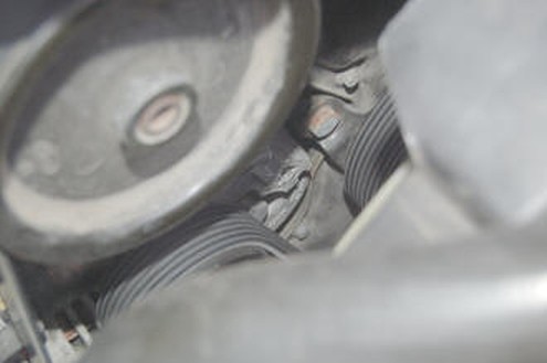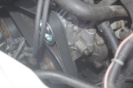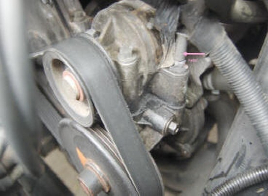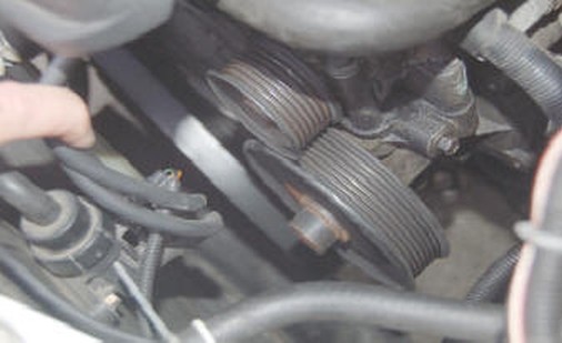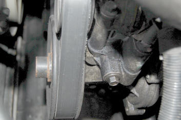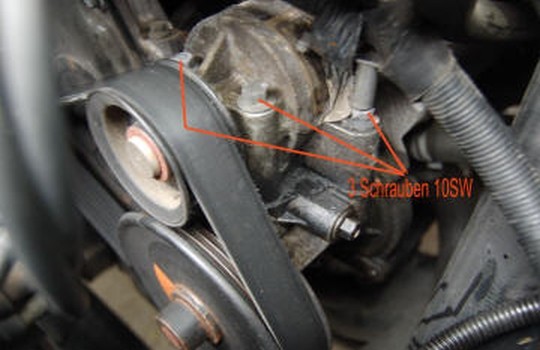 Wir nehmen den Keilriemen vom Antriebsrad der Unterdruckpumpe ab, an den übrigen Stellen kann er aufgelegt bleiben.