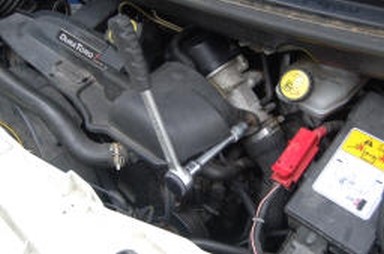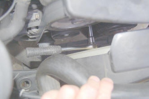 Hier ist die Ratsche im 4 Kant eingesteckt. Zum Entspannen des Keilriemens Richtung Boden drücken