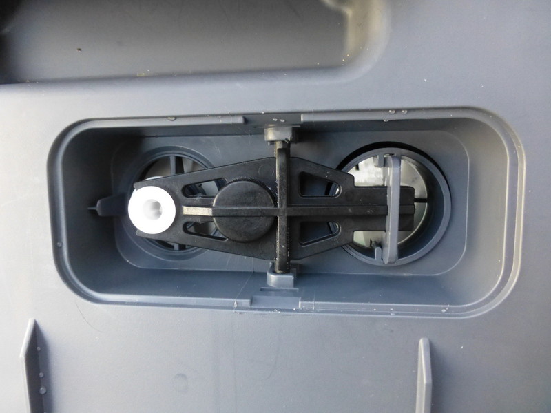 Wer also keine Absaugung installiert hat unterhalb der Kassette oder wer den geruch leid hat, denn das stinkt auch mit der Lösung von Thetford, weil der Ventilator nicht immer läuft, der kann einfach diesen Deckel entfernen und gut ist.