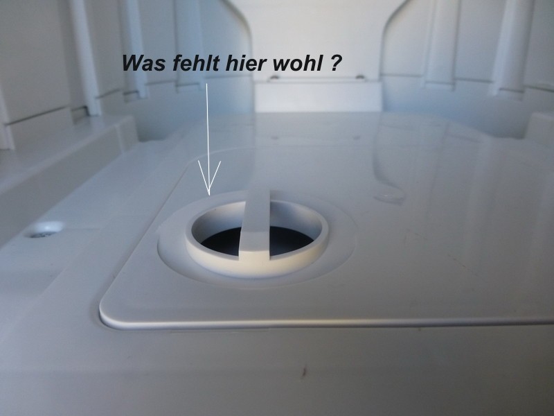 Habe heute nochmal alles aufgrund der neuen Infos hier kontrolliert und siehe da: Die Dichtung auf dem Deckel mit dem "Ventilöffner" ist vorhanden. Aber: Der Abluftschlauch darunter ist zwar montiert, pefekt durch den Unterboden geführt und verklebt, aber leider zu kurz und laienhaft schräg abgeschnitten. Sprich Pfusch!