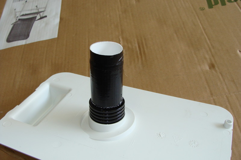 Wie von mir bereits oben beschrieben jetzt noch die Bilder für den Montageadapter (Geruchsbremse). Den Deckel habe ich noch mit eine dünnen Schicht Sanitär-Silikoin gedichtet, damit dieser im Notfall wieder entfernt werden kann. Das Klebeband wird nach dem Aushärten wieder entfernt.