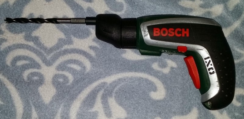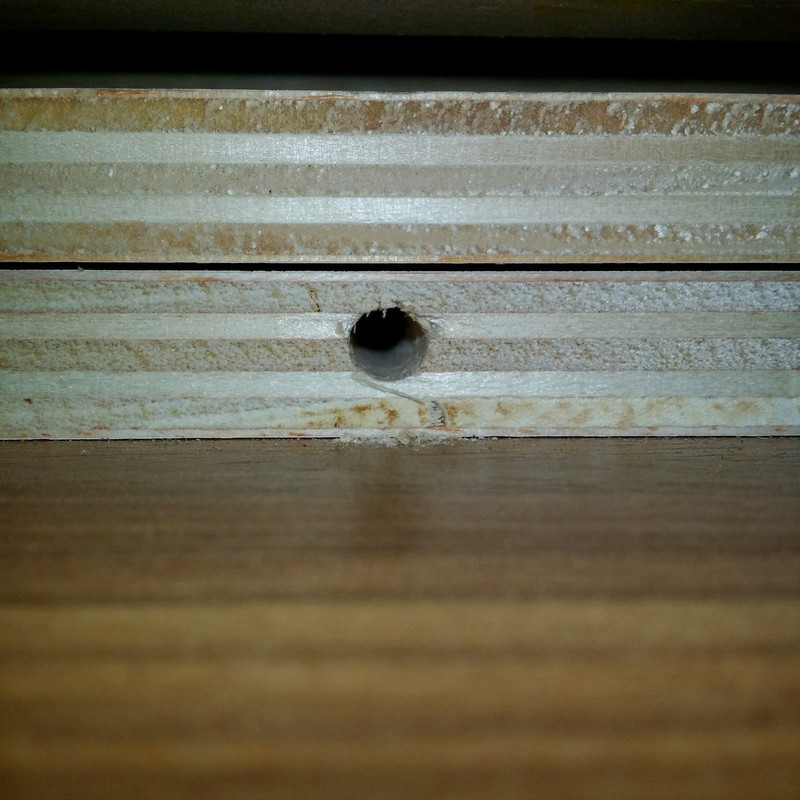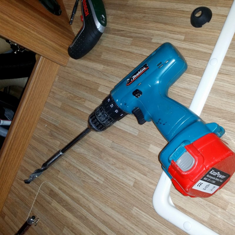 7. Im Innenraum ein Loch für die beiden Kabel Richtung Bett bohren. Ich habe erst mit der kleinen Bosch vorgebohrt und dann mit der Makita das Loch erweitert.