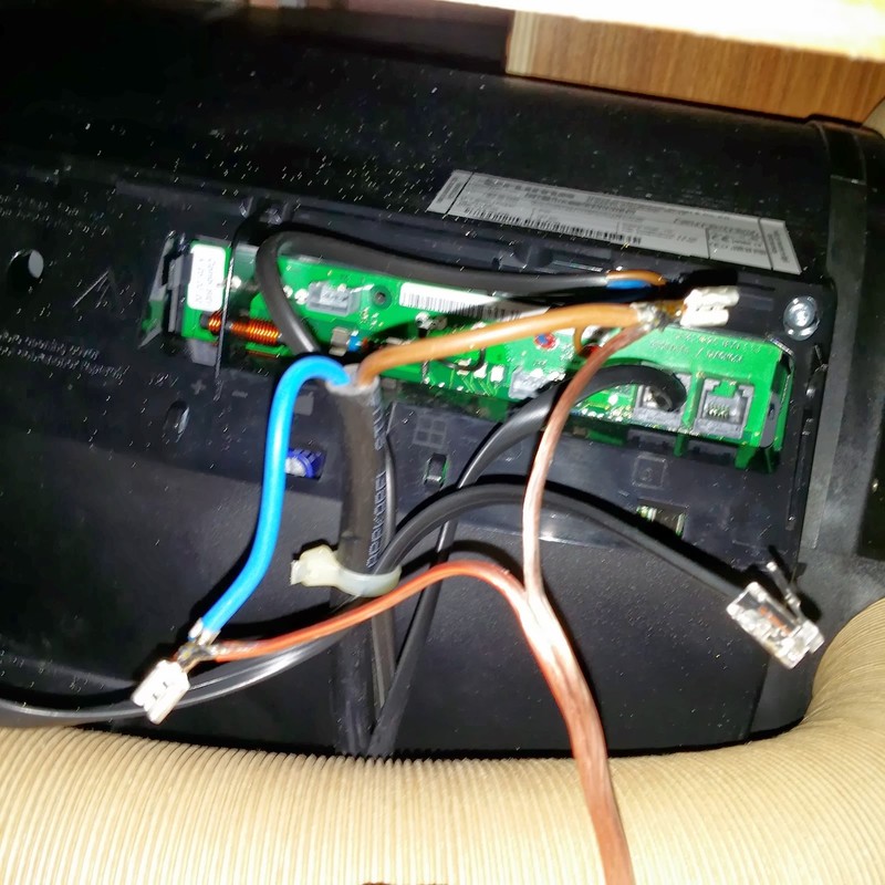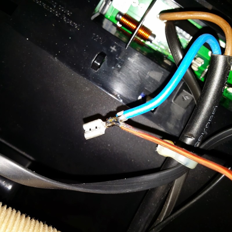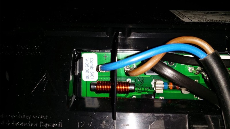 17. In der Heckgarage das blaue und das braune Kabel nacheinander von der Platine abziehen und das Kabel für den Dauer-Plus anlöten. (ACHTUNG auf dem Kabel ist Spannung! Besser ist es das Kabel stromlos zu machen, ich habe es aber so angelötet, da ich nicht feststellen konnte, wo der Strom dafür abgeschaltet wird) :schlaumeier: