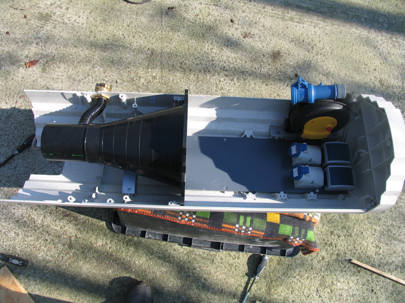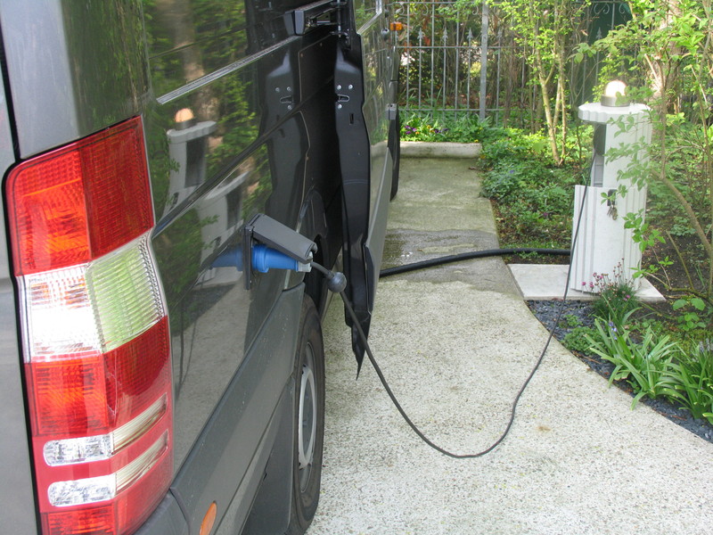 Die Lösung habe ich im Elektrogroßhandel in Form einer Stromverteilersäule für Marktplätze gefunden und mich dann ans "Umkonstruieren" gegeben! Für den Strom habe ich auf einen Kabelaufroller mit gut 5m Auslage zurückgegriffen und in die Säule eingebaut. Kabel herausziehen und an das Womo und fertig. Nach dem Laden Stecker raus und einfahren lassen: Kabel ordentlich weg!
