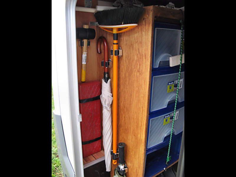 Hallo zusammen, ich möchte in der Heckgarage meines Dethleffs Esprit ein Regal aus Aluprofilen einbauen. Sicher bin ich nicht der erste, der so etwas umsetzt. Hat jemand Tipps oder besondere Hinweise die beachtet werden sollten ? Jürgen HAllo, ich habe fertige Plastik-Stapelboxen mit Schubladen in einen Holzrahmen eingepasst und diesen dann in die Heckgarage eingebaut: ![]() ![]() ![]() ![]() Gegen unbeabsichtiges Öffnen beim starken Abbremsen habe ich die Schbkästen mit einem einfachen Spannseil gesichert: ![]() Die MAterialkosten betrugen 240€; das System hat sich indrei Jahren bei ca. 240 Übernachtungen bewährt. Otone hallo, erstmal danke für die schnellen Antworten. Ich bin nun frohen Mutes und werde mal den Materialbedarf ermitteln ;-) Jürgen Hallo, ich habe die Profile aus dem Baumarkt genommen und die Boxen von Auer. Die gibt es auch im Baumarkt dann aber ohne extrem stabilen Wabenboden. Kosten etwa 90€. Die Profile werden einfach mit den Verbindern zusammengesteckt. Bei größeren Mengen kann dieses System auch deutlich günstiger in einem Outlet bezogen werden. ![]() ....habe ein regal abzugeben - siehe anzeigen markt. gruß jako Hallo guten morgen Otone, darf ich fragen, wo Du diese Kisten gekauft hast??