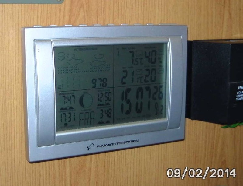 Genauso habe ich es auch. Leider habe ich die Anzeige im Mittelbereich etwas hoch verbaut. Ablesen geht schon, aber meistens ist sie dort im Schatten (Tag-Dachlicht, Nacht-Licht eher unten). D.h. man sieht nur schwer was. Ich werd wohl eine LED nachrüsten, die sie anleuchtet. RK :? versteh ich nu nicht ganz. Mein Carado hat nen Gaskasten aus stabilem Metall, mit Öffnungen nach Aussen und gegen den Innenraum isoliert. Die Rückwand hat Bierdeckel große Löcher zur Lüftung. Genau zwischen zwei solcher Löcher habe ich das Teil mit KLettband befestigt, damit ich beim Batteriewechsel das Ding einfach abnehmen kann. Dies ist aber nur der Funkaussenfühler. Die Innenanzeige, die mir auch die Aussentemperatur anzeigt, ist an der Wand über der Halbdinette befestigt. ich hatte mal eine, jetzt nehme ich den Finger :razz: hoch in die Luft .... Nee Scherz beiseite, ich habe ein 7" Tab und das hat ne App und die zeigt mir besser als jedes Thermometer überall wo ich bin alles an auch im Womo. 8) naja so wie jeder mag, aber deshalb noch Kabel verlegen, das ist ja wie in der Steinzeit. Jedes Smartphone kann euch inzwischen die Aussentemperatur anzeigen, ja ich bin eine moderne Oma :lach:
