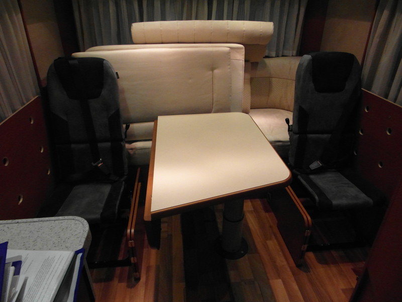 Hallo Namensvetter, So riecht es bei uns auch im ganzen Fahrzeug und durch zusätzliche Wärmetauscher im Armaturenbrett, zwischen Rolladen und Frontscheibe hält sich die Nässe auf der Frontscheibe auch in Grenzen. ;D Auf der wochner Seite wird die stehhöhe für den Mujaro mit ca. 198 cm angegeben. Da wäre noch 2 cm Platz für eine Fönfrisur :) Wolfgang Bei meinem Eura Alkoven kann man die Heizung u.a. auch nach vorne umleiten. Beim letzten Wekstattbesuch war vor mir ein Franzose, der über ständige Spannungsrisse am Fahrerhaus seines VI geklagt hat. Der Werkstattmeister hat mir dann auch später gesagt, dass er keinen VI aus diesem und ähnlichen Gründen empfehlen kann. Letztendlich eine Geschmacksfrage. Das Aufheitzen bzw Abkühlen des VI ist eine Sache, das Bett eine andere: Eine Hubbett ist kleiner, wackeliger und das Bettzeug muss immer an Ort und Stelle gebracht werden. Ich möchte lieber ein festes Bett im Alkoven mit ringsherum Fenstern, mit denen ich auch lüften kann. Die zwei Stufen mehr schaffe ich noch locker. Klar gibt es auch die Variante im VI mit Festbetten hinten, aber warum soll ich diesen Platz so sinnlos verschwenden? Hier haben wir unsere Rundsitzgruppe zum Herumlümmeln mit der 270° Panoramasicht. Tja, es ist wie immer eine Glaubens- oder Geschmacksfrage.... :D