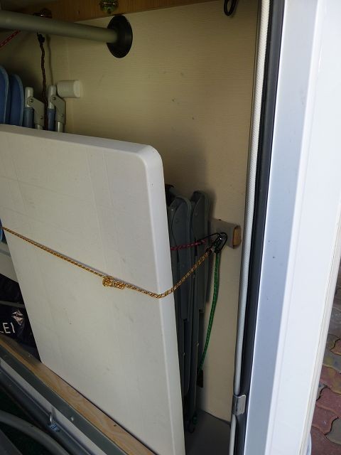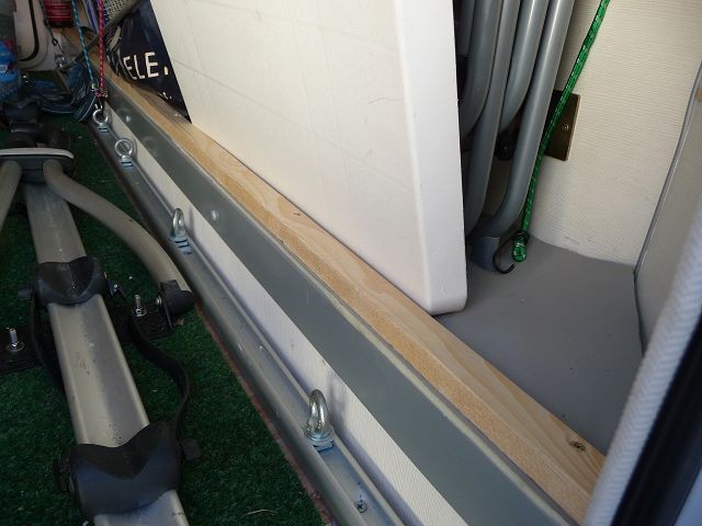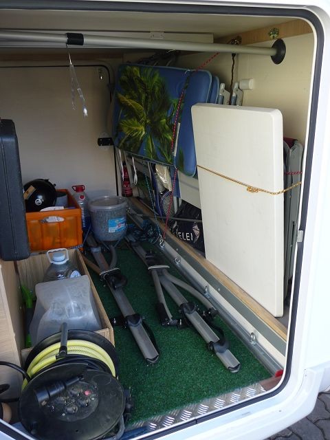 Idee war zunächst ein Fiamma Schlitten für die Räder. Möbel dürften für den Absatz zur Heckwand aber zu schmal sein.