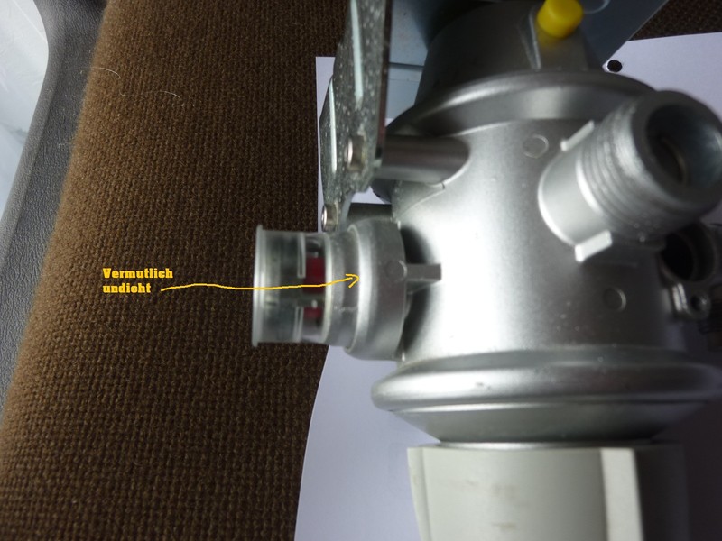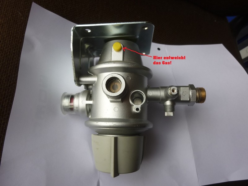 Hallo Jack, "(hast Du alle möglichen Verschraubungen und Dichtungen am Regler und den Flaschen mit Seifenlauge geprüft? (Besser geht es mit Leckspray))" Hatte ich schon beschrieben. Werkstatt sagt mir, Leckspray wäre auch nur Seifenwasser!? Hallo Frank und Jack, jetzt ein paar Bilder: [url][URL=https://www.wohnmobilforum.de] [/url][/url][url][URL=https://www.wohnmobilforum.de] [/url][/url][url][URL=https://www.wohnmobilforum.de] [/url][/url]Das mit dem Verschließen mit der Kappe und jeweils einseitig prüfen, werde ich morgen noch machen. Hallo, ich hab diesen leichten Gasgeruch auch schon festgestellt, habe auch eine DuoControl. Mir aber bisher keine Gedanken darüber gemacht. Ich war im September zur TÜV-Prüfung. Dieser hat die Dichtigkeitskontrolle sehr ausführlich und genau gemacht. Müsste sowas da nicht auffallen? Dieter Der Gasgeruch hat mich nur stutzig gemacht. Erst dann habe ich durch Kontrolle festgestellt (an der Fernanzeige), dass der Druck innerhalb einer Minute abfällt. Und das war vorher nie. Hat mindestens 2-3 Stunden gehalten. Hm, wo Du es gesagt hast, mich eigentlich auch. Deswegen hab ich ja geschrieben und gefragt, ob der TÜV-Mensch das nicht gemerkt hätte bei der Dichteprüfung. Wenn es gasschlauchseitig ist evtl.nein. Die Gasprüfung zählt ab der duo oder wenn es die nicht gibt, übergang zu den starren leitungen. Die gasschläuche werden erstmal optisch geprüft und dann mit lecksuchspray. Dort wird keine druckprüfung durchgeführt. Hallo Dieter, Leckspray ist nur zäher als deine Seifenlauge und haftet besser/ schäumt besser. Wenn Du am Regler keine Undichtigkeiten feststellen kannst, musst Du die Undichtigkeit einkreisen, wie Frank es beschrieben hat. Kannst Du weiterhin nichts findest und Du hast nach wie vor den Regler in Verdacht, lass ihn von Truma überprüfen. Bei Gas würde ich keine Kompromisse machen. :!: Du schläfst dann auch besser :wink: Hallo an alle Helfer und Interessierten, ich habe das Leck gefunden. Sobald Druck auf den Regler kommt, strömt leicht Gas aus dem gelben Stopfen, der sich am oberen Teil des Reglers befindet. Ich denke dass dieser Stopfen schon so eine Art Überdruck-Öffnung ist, da sich daran ein winzig kleines Loch befindet. Aber es weicht sofort und ständig (solange Druck vorhanden ist) Gas aus. Ich denke, das ist nicht normal und ich werde wohl einen neuen Regler brauchen. Vorhere werde ich aber bei Truma anrufen. Oder weiß jemand von Euch dazu etwas? Danke für Euer Interesse und Euere guten Anregungen. [url][URL=https://www.wohnmobilforum.de] [/url][/url]Noch ein letzter Nachtrag: Ich habe bei Truma angerufen und das Problem beschrieben. Der Service-Techniker hat sofort gesagt, dass ein neuer Regler notwendig ist. Das gelbe Teil ist ein Überdruckventil und muß im Normalbetrieb dicht sein. Eine Reparatur ist nicht möglich. Danke für die Info. Der Kauf steh bei mir auch noch an. Wie alt war denn dein Regler? Ja, der Regler ist verpreßt, ein Rankommen an die defekte Membran ist nicht möglich. Dein Regler hat entweder ne defekte Membran (abblasen durch Entlastungsbohrung), oder eine klemmende Reglerstufe (Überdrucksicherung bläst ab). Interessant für einige hier wäre sicherlich der anstehende Druck am Ausgang, kannst Du das spaßeshalber mal nachmessen lassen (Installateur). Wenn 100 mbar anliegen, ist es mit Sicherheit die Überdrucksicherung. Ich würde aber an deiner Stelle mal den Regler schlachten und nachsehen. Dazu mußt Du die Bördelkante der Dosen aufschleifen.