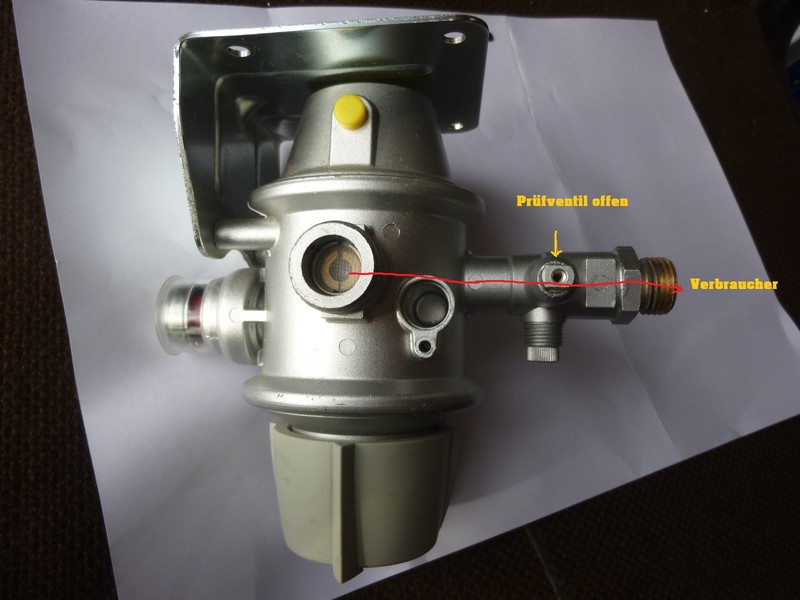 Hallo WoMo-Freunde, als ich vor einer Woche nach der Benutzung der Heizung im meinem Wohnmobil wieder die Gasflaschen im Flaschenkasten schließen wollte, bemerkte ich im Bereich des Gasreglers leichten Gasgeruch. Der Gasgeruch entstand, egal welche der beiden Flaschen ich geöffnet hatte. Ich habe daraufhin alle Anschlusse auf Festigkeit geprüft und dies auch mit Seifenwasser kontrolliert. Auffallend war auch, dass nach Schließen der Gasflaschen der Druck in der Gasleitung innerhalb von ca. 1 Minute abfiel. Das konnte ich an meiner Fernanzeige sehen, die von grün auf rot wechselte. Früher hielt der Druck meist noch mehrere Stunden. Ich habe daraufhin die schwarze Schutzkappe des Prüfventils abgenommen und das Prüfventil geschlossen. Dadurch habe ich den Regler von der übrigen Gasleitung zu den Verbracuhern getrennt. Dann habe ich wieder die Gasflasche kurz geöffnet und Druck auf den Regler gegeben und die Flasche wieder geschlossen. Der Druck im Regler fiel wieder nach ca. 1 Minute ab (sieht man dort, wo die Fernanzeige angeschlossen wird.) Ich vermute, dass der Gasregler defekt (undicht) ist. Kennt jemand so ein Problem oder kann jemand dazu etwas sagen? Ich bedanke mich schon vorab für die konstruktiven Hinweise und wünsche noch einen schönen Sonntag. Habe ich einen Denkfehler oder du? Wenn man den Hahn unter der kappe dreht, dann werden nur die Druckschläuche der Flaschen getrennt, der Rest bleibt im Kreislauf da so die Dichtigkeitsprüfung durchgeführt wird. Was ist wenn du die drei Absperrhähne zu hast und kurzfristig druck rauf gibst? Hallo Frank, wenn man das Prüfventil (unter der schwarzen Schutzkappe) mit einem 6er Gabelschlüssel um 90 Grad dreht, wird der Regler von der Leitung zu den Verbrauchern (Heizung,Kühlschrank, Herd) getrennt. Bei der 2-jährigen Druckprüfung wird dadurch am Anschluss seitlich des Prüfventils der Druck auf die Leitungen gegeben (nicht auf den Regler). Wie ich schon beschrieben habe, hatte ich alle drei Absperrhähne (Prüfventil und 2 Gasflaschen) geschlossen und trotzdem ist nach ca. 1 Minute der Druck im Regler abgefallen. Durch die drehung wird nur das stück freigeschaltet wo man das prüfgerät anschließt und die druckschläuche werden getrennt. Sonst ist die gasprüfung unsinnig. Also fahre mal so fort wie ich sagte. Verbraucher aus und alle hähne zu. Kurz druck raufgeben, warten. Wenn der druck bleibt den ersten hahn öffnen und wieder kurz druck raufgeben, warte..... Hallo Reinhard, hast Du alle möglichen Verschraubungen und Dichtungen am Regler und den Flaschen mit Seifenlauge geprüft? (Besser geht es mit Leckspray) Wenn ja, konntest Du die Undichtigkeit am Regler eingrenzen? Irgendwohin muss das Gas ja verschwinden :gruebel: Acj, gerade gelesen das du die hähne zu hattest und trotzdem das problem. Tippe auf evtl einen Schlauch. Sonst klemme mal ein schlauch komplett ab und schraub die Blindkappe rauf. Beobachten. Problem noch da, mit der anderen seite so fortfahren