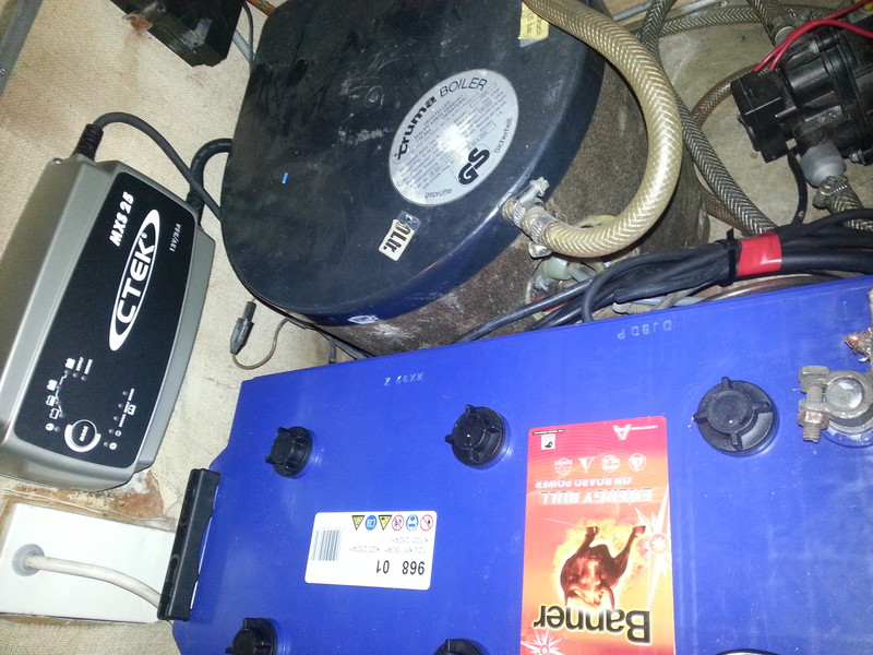 Hallo zusammen, nachdem wir uns entschieden haben noch mindestens vier Jahre unsere alte Dame ( einen Prototypen das Niesmann&Bischoff Clou 660 ) mit EZ 11/1981 weiter zu fahren, haben wir gerade mit einigen "erlaubten" ( H Kennzeichen ) Modernisierungen angefangen. Die Gasanlage hat einen neuen 100l Tank bekommen ( beim alten war die 10 Jahresprüfung mit nötigen neuen Armaturen, Füllstopp,... unrentabel ) und aktuell habe ich gerade die alten Batterien ( 2x 80AH ) vom Aufbau und das alte Ladegerät ( hat gebrummt ) erneuert. Dabei auch gleich die Elektromurksereien unseres Vorbesitzers behoben. Eigentlich ein Wunder das uns das Mobil nicht irgendwann auf den letzten 100tkm abgefackelt ist :( - 4mm² Leitungen ohne Absicherung einfach auf die Polklemmen und so Sachen!! Zumindest ist jetzt alles mit Aderendhülsen über einen Sicherungsblock sauber und ordentlich verbaut, ein CTec MXS25 25A Ladegerät mit Temperaturfühler verbaut und eine Banner Energy Bull 230Ah Batterie drinnen. Und genau die macht mir etwas "Sorgen" !! Bei der Batterie gibt es keinen zentralen Entgasungsanschluss sondern jede Zelle hat in der Nachfüllöffnung ein kleines Loch zur Entgasung. Das ganze ist nur zusammen mit dem Ladegerät, dem Truma Boiler und einem der Wassertanks im Bettkasten. Also ohne ernsthafte Belüftung. Laut meinem Händler soll das kein Problem sein, da die Batterie ( Glasvlies ) bei Verwendung des CTec Ladegerätes bzw. bei Bordladung über den vorhanden Laderegler nicht ausgast. Stimmt das so, oder sollte ich lieber eine Entlüftung "bauen"?? Ist Knallgas schwerer als Luft und "fließt" nach unten ab ??? Hier noch Bilder dazu ... Einbausituation im Bettkasten ![]() Der neue zusätzliche Sicherungsblock ![]() ..und der neue Gastank mit neuen Anschlussleitungen und neuem Druckminderer ![]() Hallo, Der Wasserstoff ist leichter als Luft. der Sauerstoff ist genauso schwer wie der in der Luft. Mf Lothar Ersetze doch die Stopfen. Da gibt es was von Moll. Kamina heisst das System. Die Stopfen bilden ein Schlauch-U. Darf man hier verlinken? --> Link Chester Ich besitze die Banner Energy Bull je 250 Ah (also die ein wenig ältere Ausführung) zweifach seit 3 Jahren. Fakt ist, dass ich seitdem mit zusätzlicher Solaranlage kein Wasser verbraucht habe und deshalb auch von einer sehr geringen Gasung ausgehe. Dennoch: Sicherheitshalber habe ich mir die Moll Reiß Kamina Entlüftung mit 25 € pro Stück installiert ( dauert 10 Minuten). Das macht nen besseren Schlaf.... :wink: Händler hat recht, bei verschlossenen Batts (AGM/wie bei Dir/ u. Gel) keine Entlüftung notwendig. Die können ohne Entlüftung im Innenraun eingebaut sein, da sie normalerweise die entstehenden Elektrolyse-Gase (Sauerst. u. Wasserst.) vollständig wieder zu Wasser rekombinieren (kalte,leise Knallgasreaktion über Katalysator wie in unseren Körperzellen, hier Kat Cytochrome= Warburgsche Atmungsfermente, durch Cyanide (Cyankali) blockierbar). Erst wenn durch falsch erhöhte Lade(schluss)spannungen die maximale Rekombinationskapazität überschritten wird, treten die Gase durch Überdruckventile (valve regulated in VRLA) über die Löchlein aus. Davor soll die Temp.-Kompensation des Laders schützten. Für AGM (Dein Typ) ist Ctek 25A i.O., bei Gels wäre mir die Ctek-Spannung etwa 0,1-0,2V zu hoch. In keinem Fall darf die Recondition-Funktion des Ctek aktiviert werden! Ist nur für offene (Flüssig)-Batts gedacht, die bei Spannungen um 15V Abgasen dürfen (Aufheben von Schichtung). Wasser kann ja nachgefüllt werden. Runde Verschlüsse bei einmal gefüllten AGMs nicht mehr aufdrehen, ebenso wenig Gels, die werkseitig gefüllt geliefert werden. Batts gehen ein. Gr.R Ich kann nicht klar erkennen um welche Batterie es sich handelt, gemäß Datenblatt gibt es auch welche die verdünnte Schwefelsäure als Elektrolyt haben und Nachfüllwasser erforderlich ist. Dies sind dann weder AGM`s noch Gel sondern normale BleiSäure die natürlich beim Laden gasen und dafür ausdrücklich Entgasungsanschlüsse haben. Ich kann leider nicht sehen das Du eine AGM hast, aber vielleicht habe ich etwas übersehen Hy, ist `ne normale Nassbatterie. Nichts mit AGM...gEL usw. Die Art.-nr. prangt doch gross drauf :D Es stimmt, die "grossen" Banner besitzen eine Einzelentlüftung. Von daher ist die Lösung von Felix doch optimal (MOLL Kamina) Suuuper - VIELEN DANK!!! Ich habe direkt eine Anfrage an Moll geschickt. Ich hoffe da kommt schnell eine Antwort. ...unglaublich - Moll hat auf meine Anfrage innerhalb von 5 Minuten ein Angebot geschickt. 39,- Brutto incl. Versand. Soll Montag schon da sein. Hallo, stimmt! wurde durch das Glasvlies irritiert u. habe Energie B. mit Running B. verwechselt. Also Nasse , Taschenseperatoren mit Glasvlies. Im Datenblatt der 96801 ist mir jedoch die max. Ladespannung aufgefallen, die mit 13,8 V !!! angegeben wird. Das CTEK hat aber 14,4 V als Standard bei 20-25°C !!! Also passt nicht ganz. Wenn trotzdem damit geladen wird, hohe Gasung mit enormem Wasserverbrauch zu erwarten, damit auch hoher Gasanfall, gute Entlüftung dann natürlich Vorraussetzung. Gr.R Typ. BANNER halt. Hier: --> Link auf Seite 80 gibt es noch ein paar "Spanungsvorschläge" :D Die 13,8 V sind mit Sicherheit nur für die Erhaltung. Die Offenen können getrost bis max 14,8 V geladen werden. Macht meine seit gut 6 Jahren so mit. Das passt schon. Meine gasen trotz CTek auch nicht, sind topfit! :) BANNER halt :D Da müssen die echt noch dran arbeiten. Die Entlüftung ist noch nicht angekommen - soll aber wohl heute da sein. Dafür habe seitens Banner die Info das die 13,8V die Ladespannung für Dauerladung ( z.B. über Solar )sind und eine Ladung problemlos und ohne erhöhte Ausgasung auch mit 14,4V erfolgen kann. Da bei uns normal das Womo ehr selten am Landstrom hängt ( 110W Solar und verstärkte Lima ) wohl sicher ok. Zwischenzeitlich habe ich noch das alte Laderelais erneuert. Das weiß man warum die ollen Clou Koffer soooo schwer sind :) ! Da es sich zwis