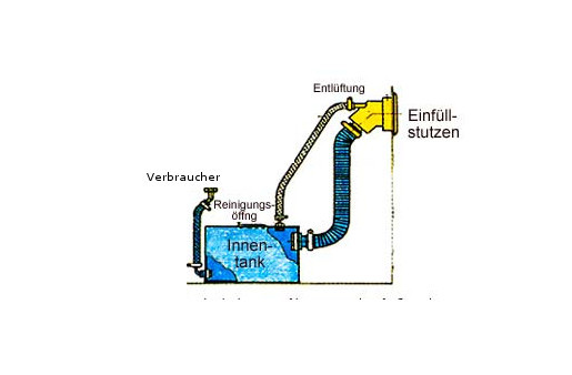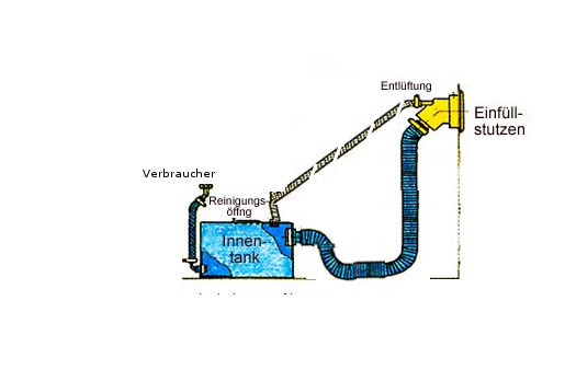 Bauweise bedingt kann ich aber den Frischwasserschlauch zur Befüllung nicht "normal fallend" in den Wassertank enden lassen.