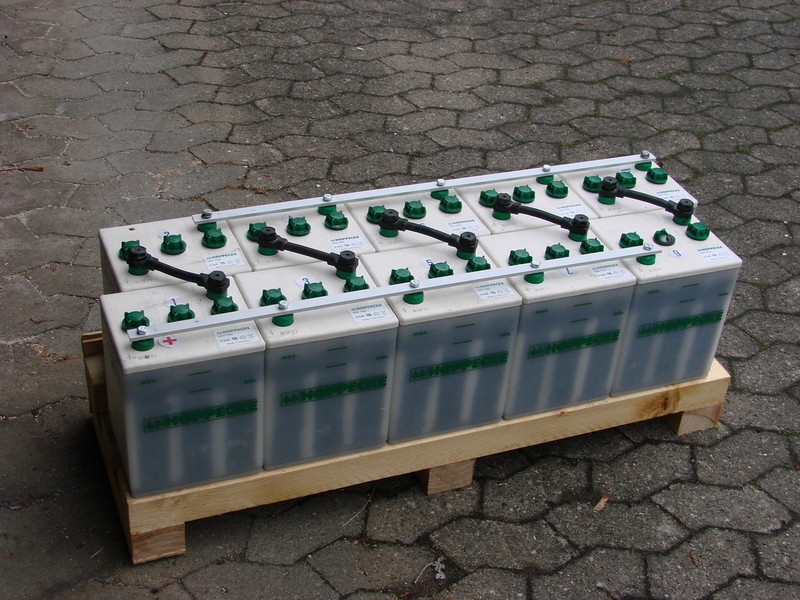 vor rund 4 Jahren habe ich mir bei ebay eine gebrauchte Notstrombatterie einer Schaltanlage ersteigert, das hessische EVU war der Meinung daß man bei der Netzsicherheit etwas sparen kann. Nachdem eine 60V-Batterie incl. Lade- und Überwachungseinrichtung angebote wurde wollte die keiner haben und für 1 € war ich dabei. Wei Notstrombatterien dieser Art für lange Lebensdauer ausgelegt und bestens gewartet sind, ein gründlicher Check zuhause einen guten Gesundheitszustand ergab, habe ich die Batterie von 10 x 6 V auf 5 x (2 x 6) V umgebaut und als Stromversorgung unseres Wochendhauses eingebaut