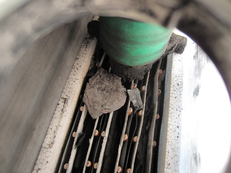 SELBSTMORD: die Batterie hatte mehrere Transporte hinter sich, bereits beim Umbau konnte ich Teile drin sehen, ein aktuelles Foto als Beispiel.