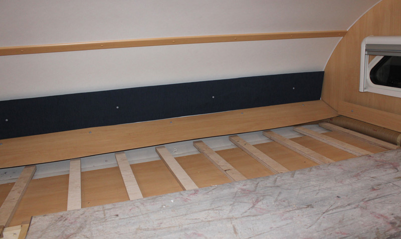 Die Unterkonstruktion die im Alkoven den in Fahrtrichtung vorderen Lattenrost trägt ist gebrochen. :eek: