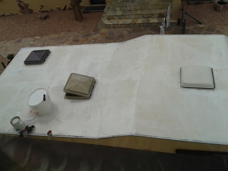 Schau gut aus, Tom. Was hast du da jetzt für ne Beschichtung genommen, und was hat das Zeug gekostet? Hast du die Aluleisten an der Kante auch überstrichen oder machst du die neu drauf? Und nicht jeder hat das sonnige Wetter genossen, ich hatte Schwiegermutterdienst... Dann lieber Dach beschichten da weiß man Abends wenigstens warum man müde und k.o. ist.... :D