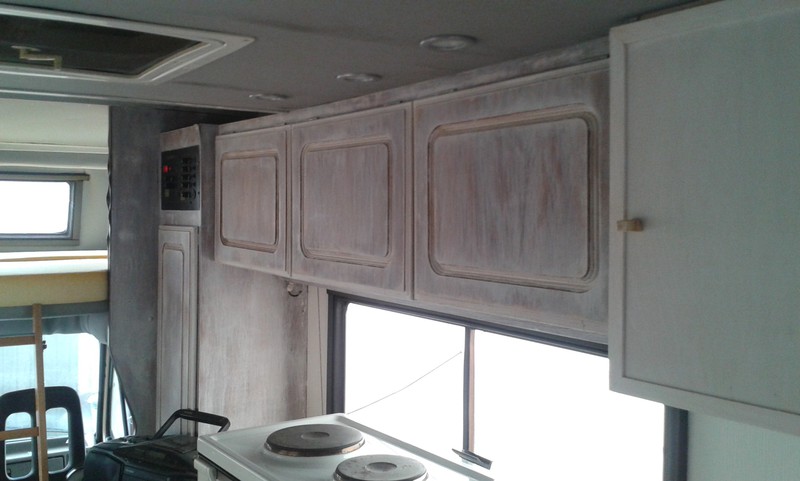 wir haben das übliche Material benutzt, d.h. Styropor und Lattung, dann den Unterbau mit Material von "Winnebago" das ein Bekannter von mir noch rumliegen hatte. Darauf original Dachhimmel vom Audi A3 oder A4, was ich auch "günstig" bekommen habe.Das Dach wurde von aussen mit Caravanbeschichtung abgedichtet, die Kantleisten und das Alkovenfenster vorne mit Dekalin neu abgedichtet. Die Möbel haben wir einfach abgeschliffen und mit "Wasserlack" gestrichen. Natürlich haben wir im Urlaub wieder gemerkt, was noch zu verbessern ist und ich habe für den Winter schon wieder einiges zu tun !!