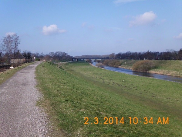 Ich ging dann auf der anderen Kanalseite zurück Richtung Stellplatz. Zunächst führte auch dieser Weg am Kanal entlang, aber dann ging es quer ab und etwa 100 Meter weiter am Flüsschen Lippe entlang zum Stellplatz an der Eislaufhalle zurück. Gleich hinter der Brücke über die Lippe liegt an der linken Seite der Eislaufhalle der Stellplatz
