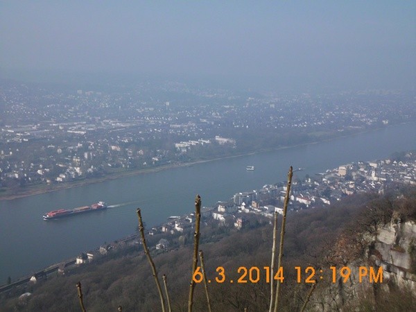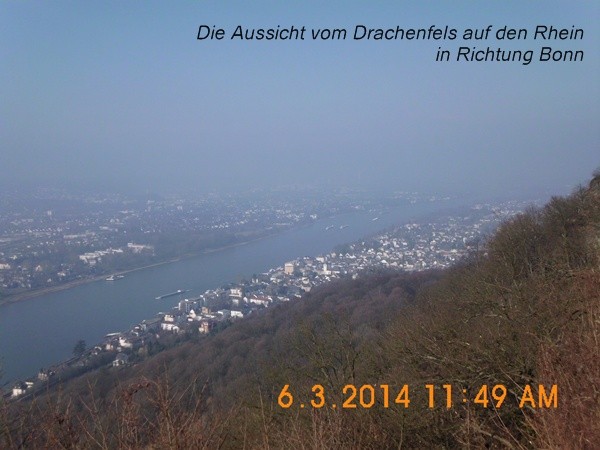 Und auch von hier oben kann man die Aussicht auf das Rheintal genießen... Tief unter mir sieht man auf dieser Seite des Rheins den Ort Königswinter und am anderen Ufer die Orte Bad Godesberg und Bonn.