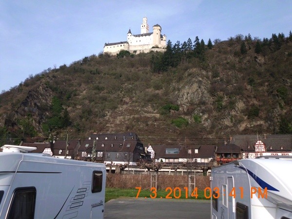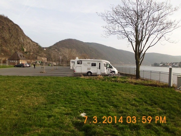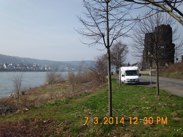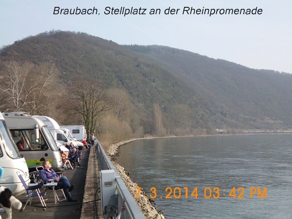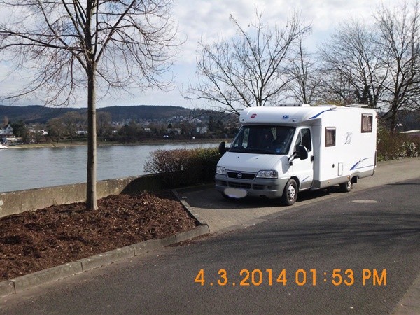 Am Morgen machte ich dann das Fahrzeug wieder fahrtüchtig und nachdem der Platzwart mich vom Stromkasten abgestöpselt hatte, konnte ich um 09.15 Uhr von Braubach abfahren. In Braubach zeigte mein Kilometerzähler 692 gefahrene Kilometer an. Mit letzten Blicken auf den Rhein ließ ich den Dieselmotor an, mein Platz war schon von einem älteren Ehepaar (beide Jahrgang 1930 !!! ) begehrt.