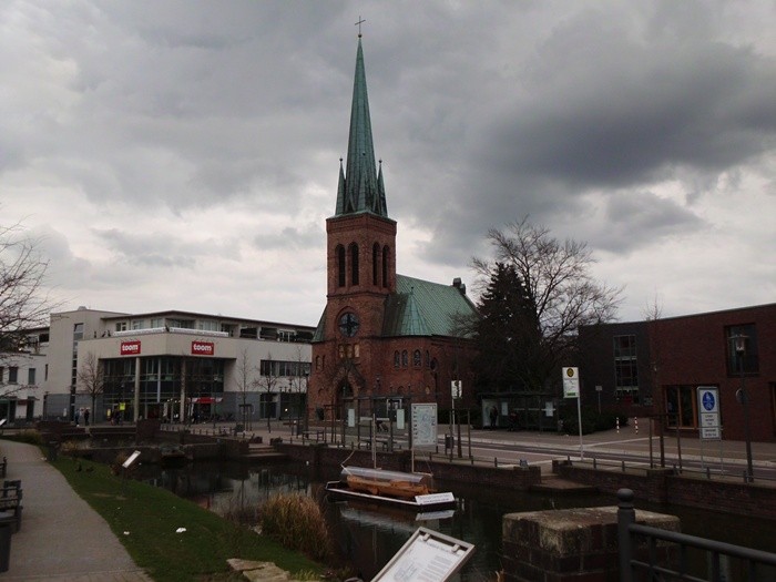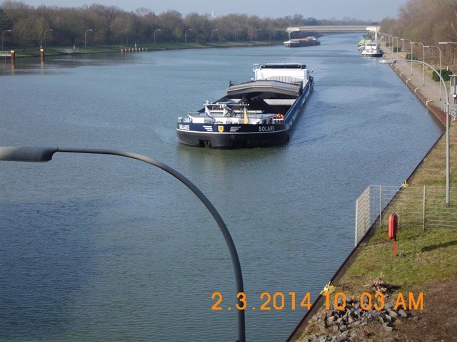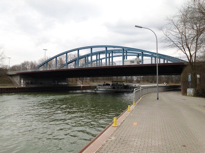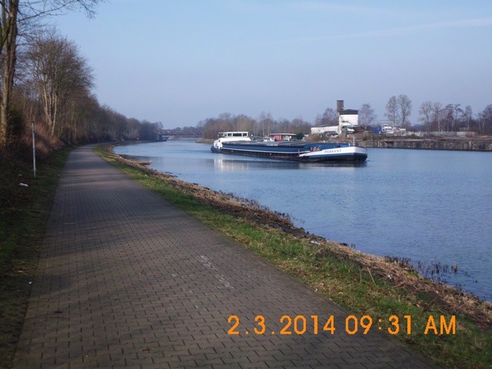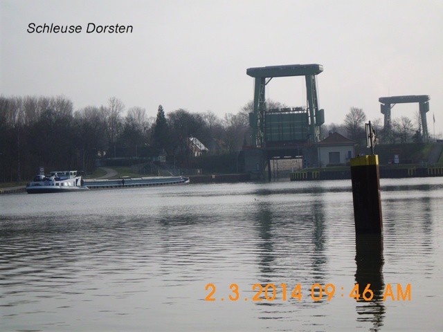 Gerade kam auch ein Frachtschiff auf dem Kanal aus Richtung Wesel ( also vom Rhein her ) angetuckert...
