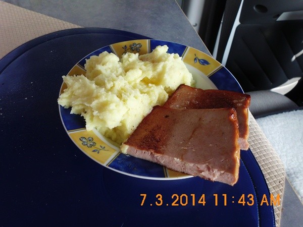 Nun, nach so viel Kultur auf einen Schlag, war es aber Zeit, daß ich mich ums Mittagessen kümmerte. Und wo 1945 die Soldaten eine Schlacht schlugen, schlug ich mir den Magen voll. :D Es gab Leberkäs mit Kartoffelpüree.