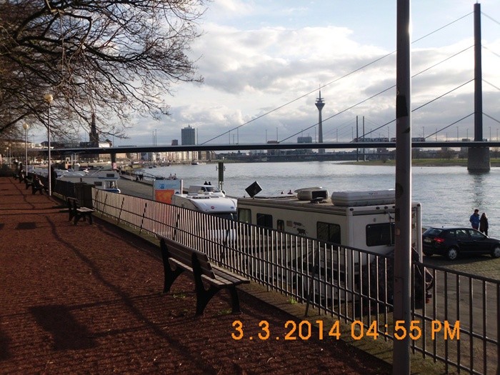Nach einem einstündigen Auffenthalt am Schleusenpark, setzte ich dann die Reise fort und kam über Bochum, Essen und Mühlheim/Ruhr dann vom Navi geleitet nach Düsseldorf. Hier fuhr ich auf den Stellplatz am Tonhallenufer direkt am Rheinufer.