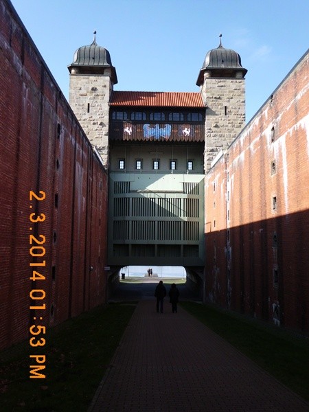 ^Hier ist die Zufahrt zur Fähre und auf der anderen Strassenseite ist das Stadttor...