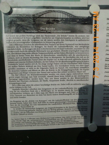 Hier fand ich einen schönen Parkstreifen direkt an der B 42. Es handelt sich um eine geschichtsträchtige Stelle. Es ist die Ruine der Ludendorff-Brücke, besser bekannt als "Brücke von Remagen". --> Link Wer kennt nicht den bekannten Kriegsfilm --> Link . Bevor ich aber das Mittagessen zubereitete, sah ich mir erst noch das Örtchen Erpel an.