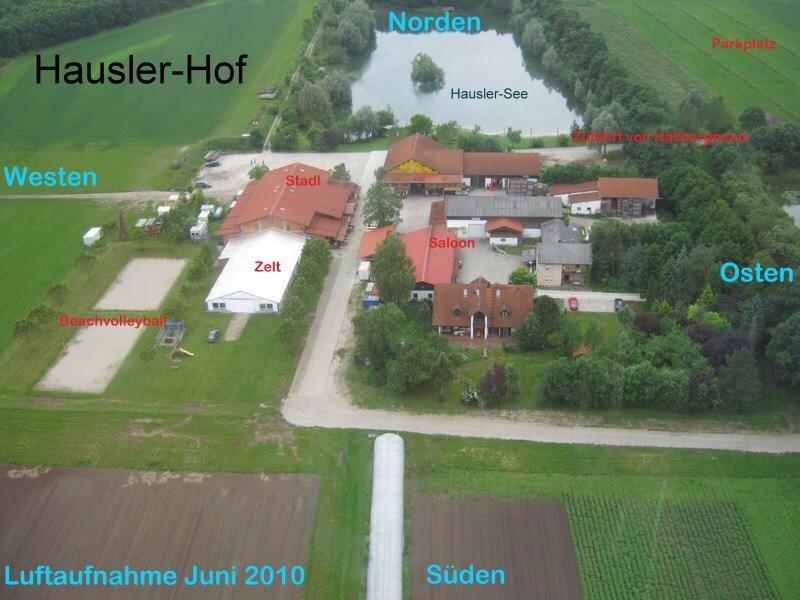 Hallo! War jemand von Euch schon mal auf dem Hausler Hof (bei Hallbergmoos, nördl. München)? Ist im Bordatlas aufgeführt. Wie waren Eure Erfahrungen? Viele Bär Der Hausler Hof liegt abseits von Halbergmoos in ruhiger Lage. Nette Leute, gutes Essen, tolle Events. Gut zum spazieren gehen, ideal auch für Hunde. In den Ort dürften es schon 1-2 km sein. Ich war bisher nur mit dem PKW dort. Parken ist aber auf dem weitläufigen Gelände auch für Dickschiffe geeignet. Wie es mit den sanitären Einrichtungen außerhalb der Geschäftszeiten aussieht weis ich nicht. Bilder und Auskunft hier: --> Link Der Hausler Hof von oben. "Hallo Bär, diesen Hof kenne ich nicht. Wir haben vor langer Zeit aber mal an einem anderen Event-Hof übernachtet. Der Abend dort war schön, reichliches Essen, Live Musik u.s.w. Aber an Schlafen, auf dem nahen Parkplatz war anschließend nicht zu denken. Laute Gespräche und Türen knallen der PKW bis in die frühen Morgenstunden. Michael frühes "zubettgehen" kann manchmal anstrengend sein ;-) Super Mampfi Mampfi und Musik im Country Stadl Legendär auch das Kesselfleischessen wer mag (aber nur noch im April) Wenn man da auf dem PP neben dem See steht wird der meiste Trubel durch das eher geschlossene Areal glaube ich ganz gut abgehalten, war da noch nie mit dem Womo, weil der bis dahin nicht warm wird :mrgreen: Gerade ganz aktuell von Sebastian Hausler persönlich mitgeteilt bekommen! Die Möglichkeit besteht mit WMO am Hof zu übernachten. Strom und Wasseranschluß vorhanden. Kosten: pro WMO 10,00 € + 5,00 € Strom, Toiletten und Dusche vorhanden. Seine Tel.Nr. 0811 1830 Ich hoffe ich konnte euch helfen. Lg Zack Mille Grazie, vielen Dank. Leider hatte mir S.H. (Hofeigentümer) nicht rechtzeitig geantwortet. Daher hab ich's bei dieser Tour bleiben lassen. Aber nächstes Mal werde ich auf dem Hinweg dort stoppen. Viele an Euch Alle Euer Bär Liegt in einer sehr bescheidenen Umgebung, platt und Äcker, bei Regen wird man trübsinnig. Die Events sind weithin bekannt aber eben auch nicht jedermanns Sache. Ich wäre jetzt nicht auf die Idee gekommen, diesen Platz zu empfehlen. Nicht schlecht ist der Parkplatz am Sportheim in Attaching. Dort kann man gut essen, die Wirtin ist sehr nett und der Sohn Florian vertritt seinen leider viel zu früh verstorbenen Vater sehr gut. Während der Geschäftszeiten kann man sicher auch die Toiletten benutzen, nach Freising ist es nicht weit und nachts hört der Fluglärm auf. , Gerd |