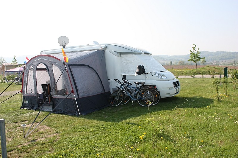Das Vorzelt wird wahrscheinlich kaum gleichzeitig mit der Markise nutzbar sein, da meine Aufbautüre schon jetzt leicht an der Markise schleift wenn ich sie öffne.