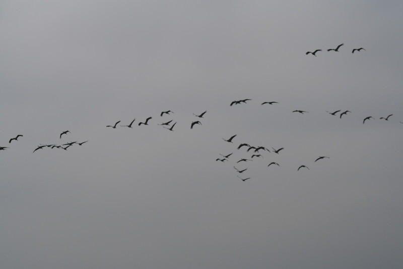 Schon auf dem Hinweg zeigten sich am Straßenrand die ersten Kraniche, die hier im Herbst zu zehntausenden Platz für ihre Rast in den Süden finden.