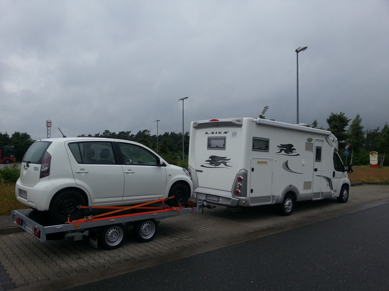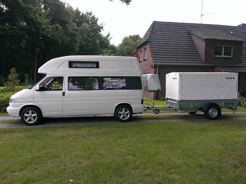 .. das sollte man aber auch einfach nur hochkurbeln können! :lol: Hey Wir fahren ab Mittwoch erstmals mit unserem Hänger inkl. Smart nach Nizza :mrgreen: von dort geht es dann weiter Richtung Spanien. Bis letztes Jahr hatten wir unsere BMW dabei und sind jetzt umgestiegen. :ja: Dabei hat sich von der Anhänger-länge (4m) nichts geändert, nur vom Gewicht :wink: Wir hatte bisher noch keinerlei Probleme trotz knapp 12m Länge. Man sollte halt immer auf den Hauptstraßen bleiben. Auf CP hatte ich noch keine Probleme, ebenso wenig in den Bergen :) Man ist halt, mit einem zusätzlichen Fahrzeug, noch mobiler und kann Ziele in der etwas weiteren Umgebung leichter erreichen :lach: Wir nehmen den Anhänger ja nur auf längeren Touren mit. An verlängerten WE reichen uns die Fahrräder ;D Hallo zusammen, bin schon seit Längerem auf der Suche nach einem Anhänger für mein Motorrad. Da es über 300kg wiegt kommt für mich nur ein absenkbarer Anhänger in Frage. Auch soll er noch in unsere Garage passen. Das schränkt die Auswahl noch mal ein. Letztlich bin ich bei diesem: --> Link hängen geblieben. Wirklich viel findet man über diesen Hänger im www nicht.Was haltet ihr von dem Teil ? aus Köln Steffel Guude! Wir sind seit letztem Jahr mit Smart/Hänger unterwegs, weil ich auf Grund einer misslungenen OP stark gehbehindert bin. Auch Rad, mit denen wir bisher unterwegs waren nicht mehr geht. Letztes Jahr waren wir in F und Damp. Dieses Jahr Österreich-Rundreise und Kleve. Nirgends Probleme mit dem Hänger. CU Vutschko So bin ich fast jedes Wochenende unterwegs.......... 8) Dethleffs Advantage mit 7,80 Meter plus 5 Meter Anhänger, da werden die kleineren Kreisverkehre mächtig eng!! :lol: ![]() Hallo RaiWo und Noricum, Habe überhaupt keine Erfahrung im Hängerbetrieb. Mein WoMo hat 130PS. Damit ziehe ich wohl mit Hänger keine Wurst vom Teller,oder? Welche Maschinen fahrt Ihr? Steffel Also mit unseren 3,85 t plus Anhänger mit 600 kg hat unser Womo mit 109 Ps keine Probleme, selbst auf Landstraßen in den Alpen waren wir nie ein Hindernis! Auf der AB fahre ich immer um die 100 Km/h, ebenso auf Landstraßen, klappt alles wunderbar! Da würde ich mir mit 130 PS überhaupt keine Sorgen machen. Wir fahren entweder einen kleinen Hänger für Geraffel, womit wir auch in Schweden waren. Oder seit diesem Jahr einen Hänger mit Smart. Probleme hatten wir nicht. Auf Stellplätzen müssen die manchmal auf nen separaten Platz, was kein Problem ist. Oder wenn sie breit genug sind, dann passt er auch mit auf den Stellplatz. In Norwegen waren wir ohne Hänger und zumindest mit dem Smarthänger hätte es gelegentlich schwierig werden können. Hai! MAN,8,8 t und Hänger 1.500 kg, 220 PS CU Vutschko Moin Wir fahren die letzten 12 Jahre meistens auch mit Anhänger. Kleiner 3 Meter langer Anhänger fürs Mopped. 100 Km/h Zulassung, den merkt man garnicht hintendran. Beim Rückwärtsfahren kann es wegen der geringen Anhängerlänge etwas frickelig werden. Mit Rückfahrkamera und 2 "Peilmarken" an der Anhängerplane klappt auch das bestens! Ansonsten können wir den Hänger auch locker per Hand rangieren z.B. auf dem Stellplatz. Unser Mobil hat 130 PS, der macht sich garnix draus ob das Mopped hinten dran hängt. Und wenn man am Zielort vom Mobil aufs Mopped umsteigt um die Gegend zu erkunden so ist das die ideale Fahrzeugkombination! Klaus ich hätte da auch noch eine Frage zu. kann ich meinen Fahrradträger an der Rückwand trotzdem nutzen auch wenn ich mit einem kurzen Hänger unterwegs bin? Kommt auf die Deichsellänge an. Nimmst Du einen offenen Motorradanhänger oder einen geschlossenen? Ich hatte an den Wheely gedacht. Erst mal offen Ich glaube der hat eine recht kurze Deichsel. Sollte aber in diesem Fall trotzdem funktionieren. :ja: Ich meine auch Aber der Typ auf der Messe behauptete das sei verboten. Nur hab ich hier ein Bild gesehen auf dem das so ist. Habe gerade noch mal geguckt. Das könnte doch knapp werden. Wie viele Räder transportierst Du denn an der Rückwand? 3 Dann wird es glaube ich eng. Das es verboten sein soll habe ich auch noch nicht gewußt. Der Verkäufer sollte da aber mehr Ahnung von haben als ich. Ich habe das allerdings auch schon häufige gesehen. Ein Kollege von mir fährt auch mit Hänger und Rädern auf dem Träger. Der hat allerdings wirklich eine lange Deichsel. hmm, doof. Ich hab noch gar keine Ahnung von Hängern, hatte mir den Wheely aber als einfaches Gefährt vorgestellt gerade auch wegen der kurzen Deichsel. Vielleicht kuck ich doch noch nach was anderem Rangieren kannst Du immer besser mit einer längeren Deichsel. Aber das mußt Du ja bei so einem kleinen Teil nicht. Den kannst Du beim rangieren lieber abkuppeln. Der Wheely ist halt vom nutzen sehr eingeschränkt. Was sperriges läßt sich nicht transportieren. Kann man den Wheely nicht vielleicht aufrüsten das die Räder da noch mit drauf passen? :roll: kann man, ja. War halt nur, weil ich den Träger ja schon drauf hab Rangieren kann man mit langer Deichsel besser? Sicher? noch kann ich es gar nicht. Das wird noch was Wenn es die Option gibt würde ich die auf jeden Fall nutzen. Bei Fahrrädern an der Heckwand habe ich sowieso immer leichtes Magengrummeln. Je kürzer der Abstand vom Kugelkopf zur Achse, je empfindlicher reagiert der Anhänger auf kleine Lenkkorrekturen. Aber wie gesagt, so ein kleines Dingelchen würde ich einfach abhängen (wenn es nicht gerade am Berg ist). :mrgreen: ich werde es nie verstehen! Leute wollen kurze Fahrzeuge, darf nicht über 7m sein und bammeln sich noch ein paar Meter hinten dran. Durch den Bammel werden die Gespanne teilweise >10m. Warum nimmt man nicht gleich ein 9m-Fahrzeug, wo man alles trocken in die Heckgarage bekommt? lieber Thomas. alles falsch schön dass es Leute gibt, die mal eben das Fahrzeug wechseln ich hab ein 7,40 Mobil. Gewichtsmäßig sind wir recht ausgelastet Als wir das gekauft hatten, war von alle dem nicht die Rede. Vielleicht ein Fehlkauf, wer weiß seit