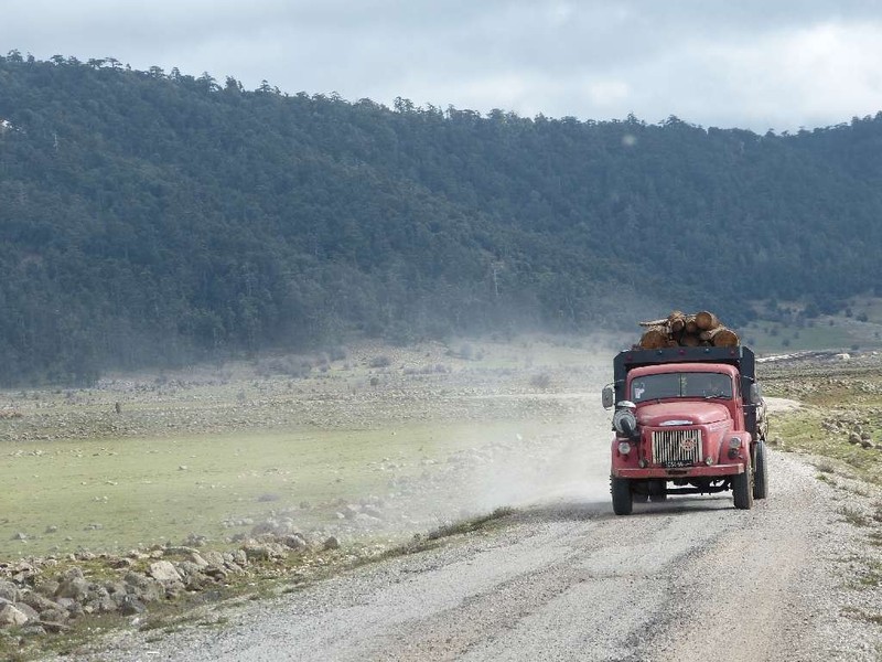 Die Zedernstr. führt über ca. 50km durch den größten Zedernwald Marokkos, der für uns Europäer ein wirklich ungewöhnlicher Anblick ist. In dem Wald leben auch Affen. Man kann sich auf der Straße nicht verfahren, wenn man immer dem leider etwas löchrigen Asphaltbelag folgt. Auch freies Übernachten an der Strecke ist möglich. Wir haben auf der Strecke nicht ein einziges touristisches Fahrzeug getroffen, während die N13 voll davon war. Auch für große Fahrzeuge problemlos befahrbar.