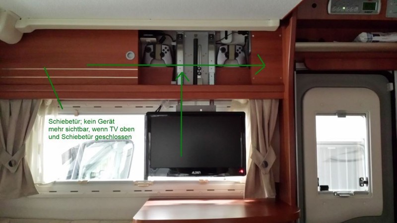Nach der Benutzung versenkt man den Fernseher wieder in die Mulde und schließt die Schiebetür – von Außen völlig unsichtbar.
