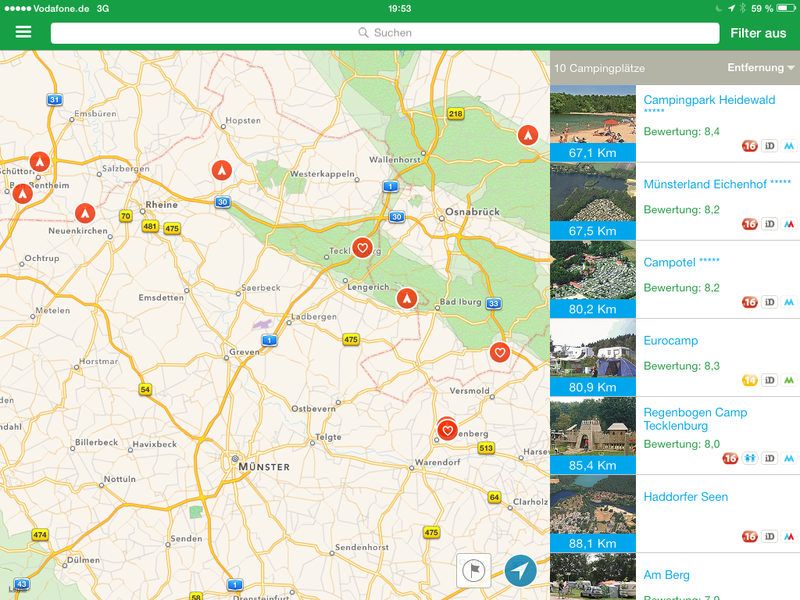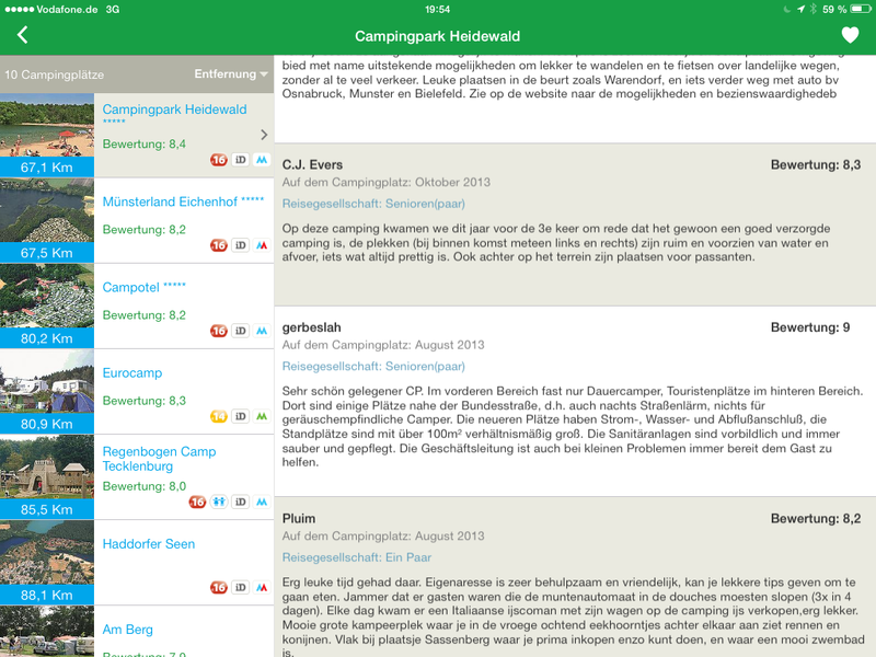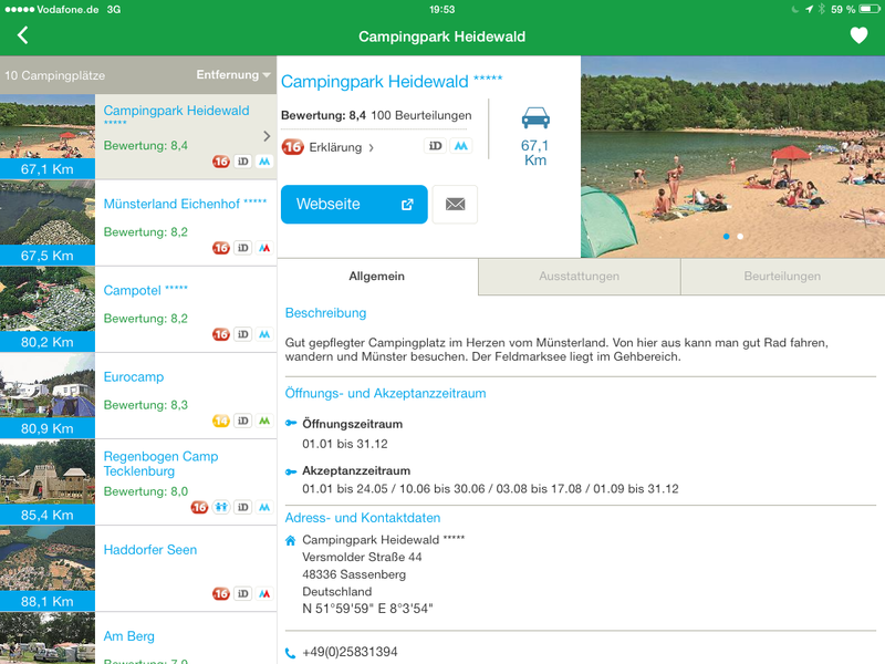 Wenn man direkt auf die Webseite mit dem Browser geht erhält man das gleiche Ergebnis ohne Campingcard und APP zu löhnen.