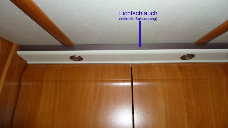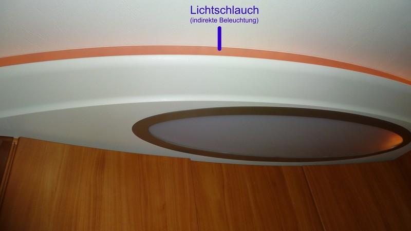 Die Lichtschläuche (hinter einer Kunststoffabdeckung) vermitteln eine angenehme Atmosphäre, ziehen aber unerhört viel Strom wie mein Batteriecomputer untrüglich anzeigt.