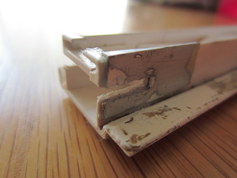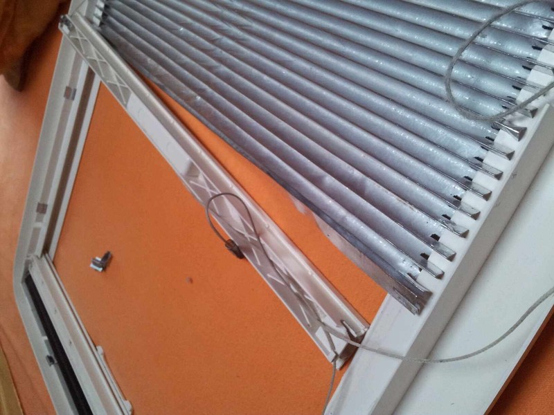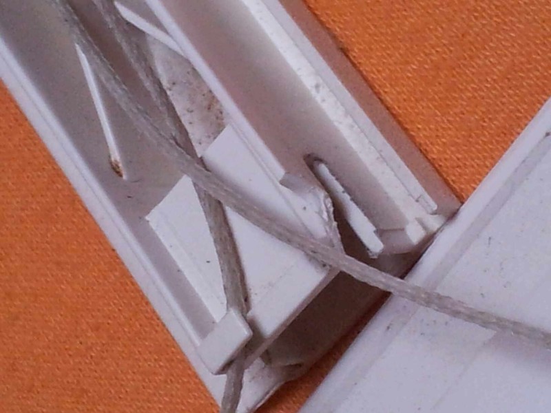 leider sind die "Führungs-Nasen" der Seilführung abgebrochen für die Verdunkelung über dem Bett (Dachluke).