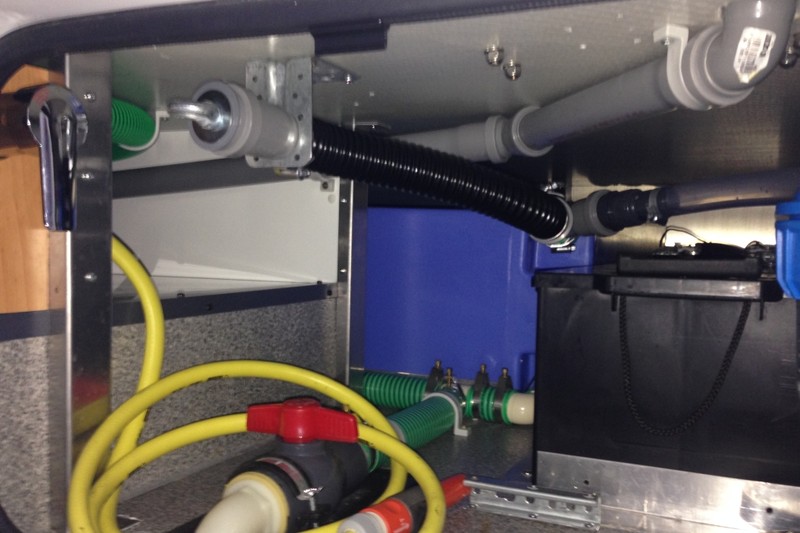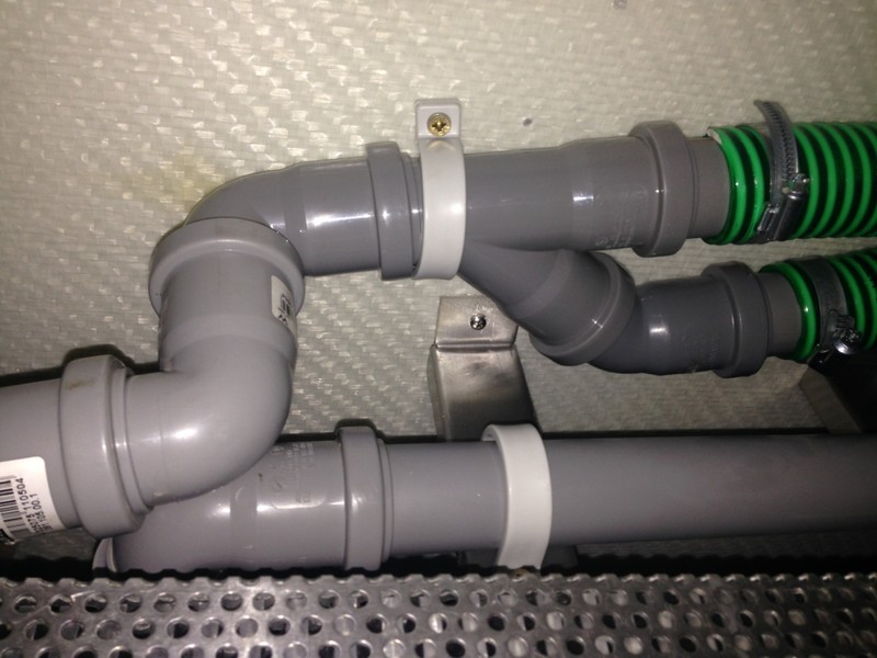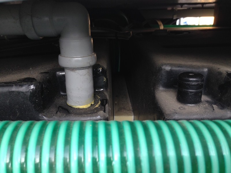 Den freien Außenwasseranschluß habe ich per Y-Stück an die Abwasserleitung vor dem neuen Siphon angeschlossen, jetzt hat unser Phoenix auch das Sonderzubehör "Spülanschluß Grauwassertank" zum leichteren Spülen z.B. mit Danklorix.