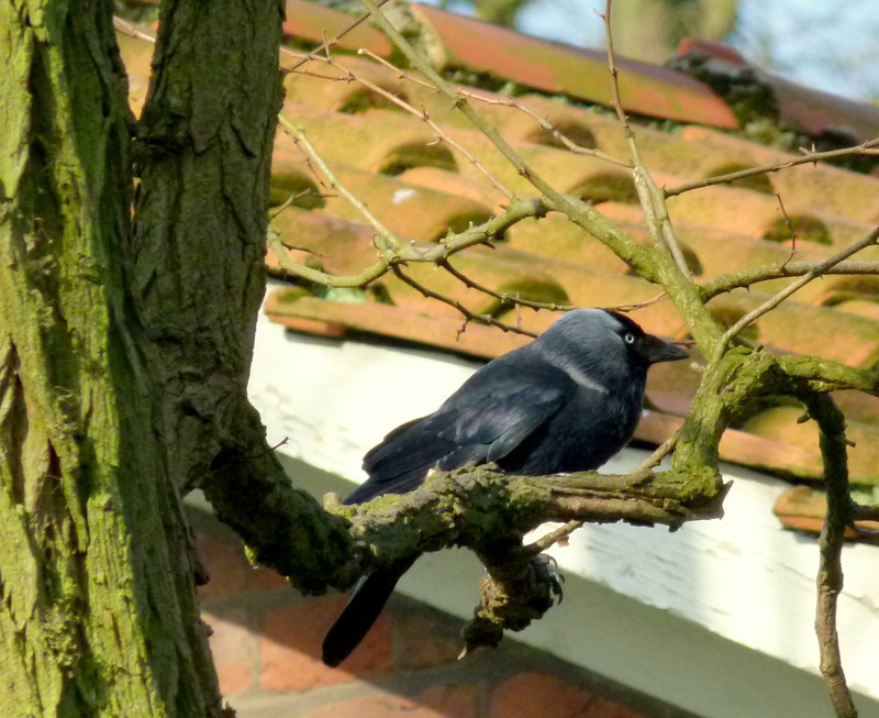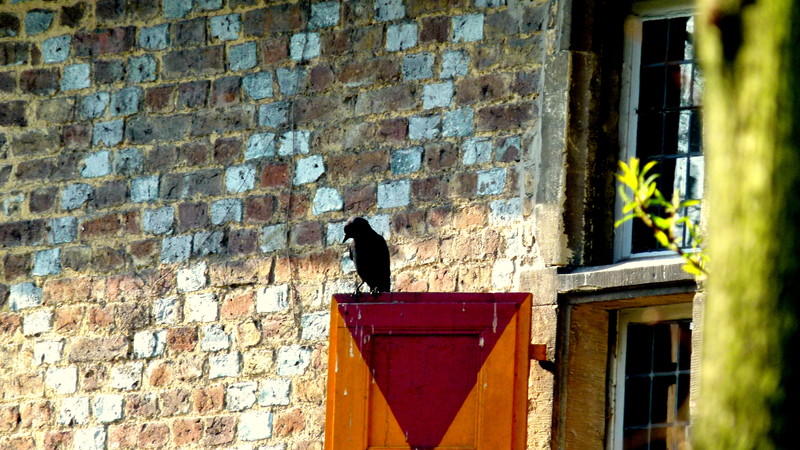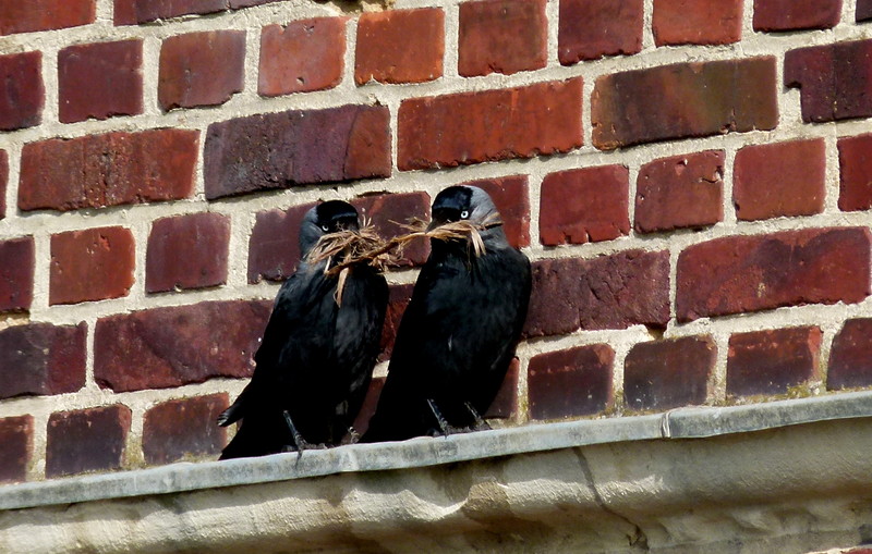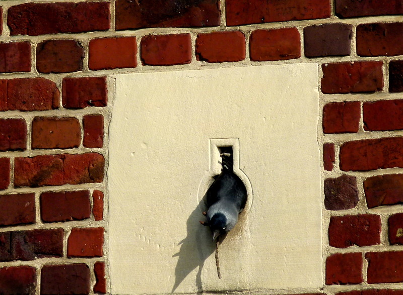 Dohlen bauen gerade ihre Nester in jeder öffenen Mauerniesche.