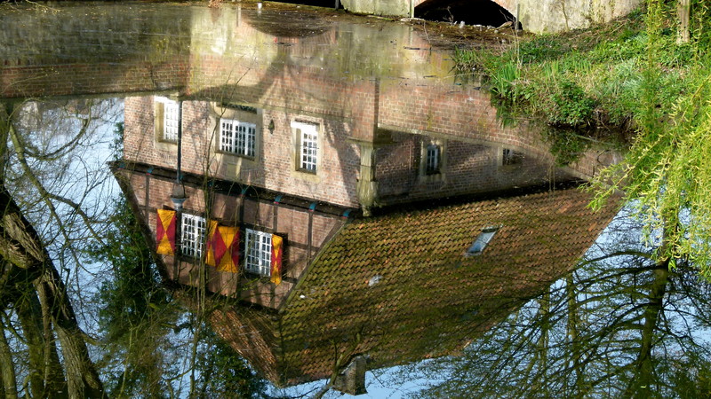 In der Gräfte spiegelt sich die alte Mühle.