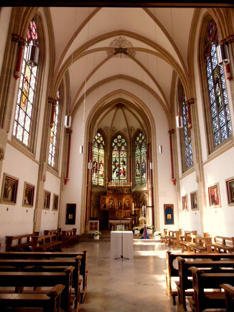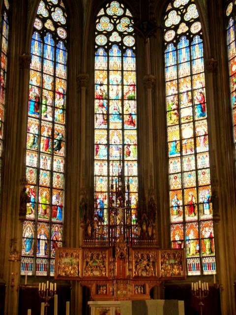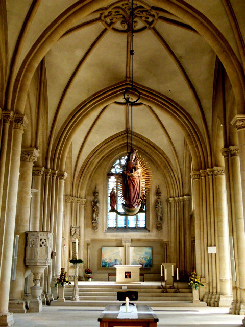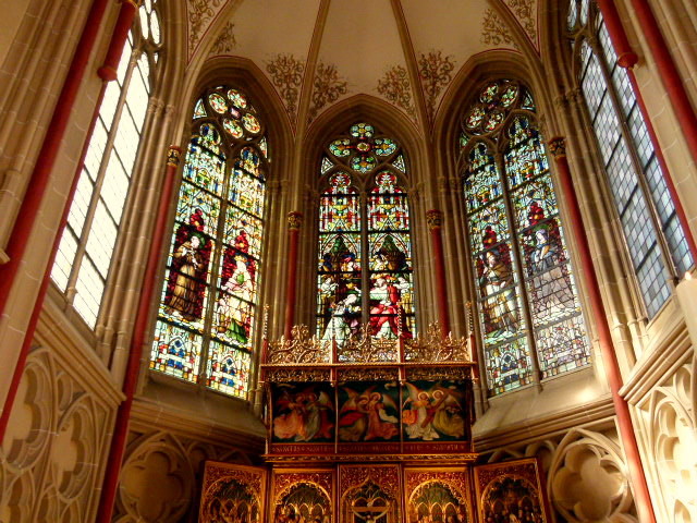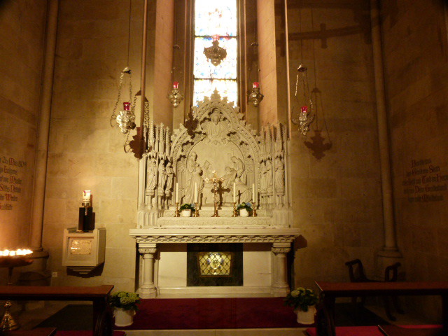 Der Altar und die Kirchenfenster sind sehenswert.