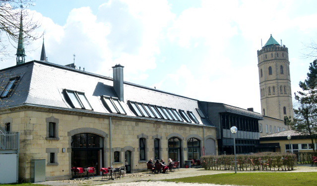 Im ehemaligen Wasserturm befindet sich heute eine Bücherei.