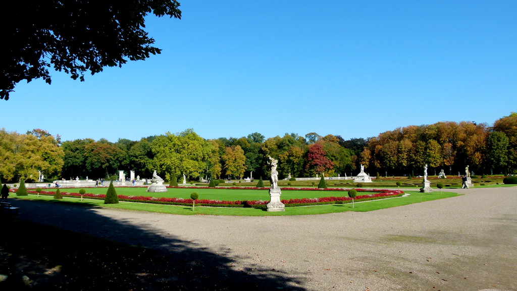 Reich geschmückt mit Statuen presentiert sich der Schlosspark.