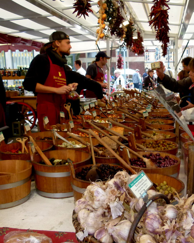 Übrigens, wer einen ganz besonderen Wochenmarkt sehen möchte, hat Samstags am Dom zu Münster Gelegenheit, ausführlich zu bummeln und die Auslagen der Händler zu betrachten und oft auch zu probieren.