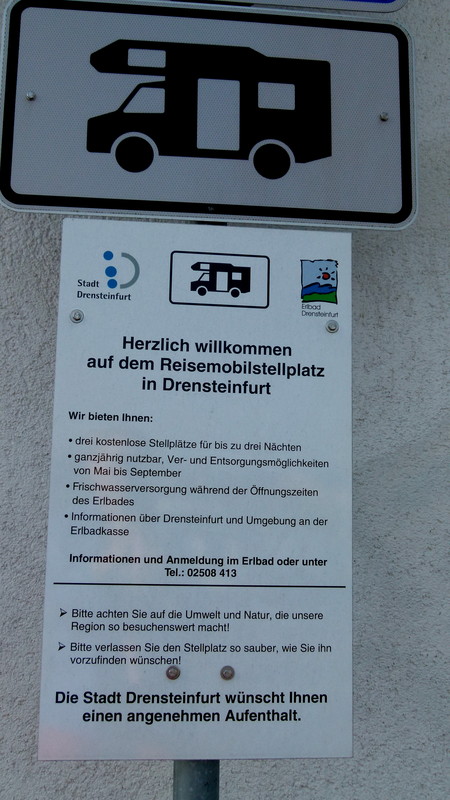 Drensteinfurt besitzt auch einen Wohnmobilstellplatz, am Freibad. Er ist nicht schön, aber das Freibad ist im Sommer besuchenswert.