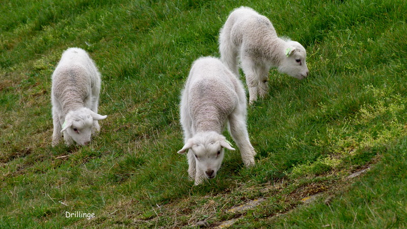 Lämmer suchen nach Leckereien. Drillinge scheint es bei Schafen häufig zu geben, zumindet in dieser Herde.