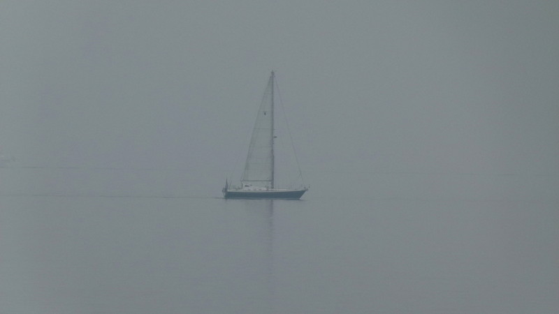 Ein Segelboot liet in Sichtweite, kein Wind regt sich.